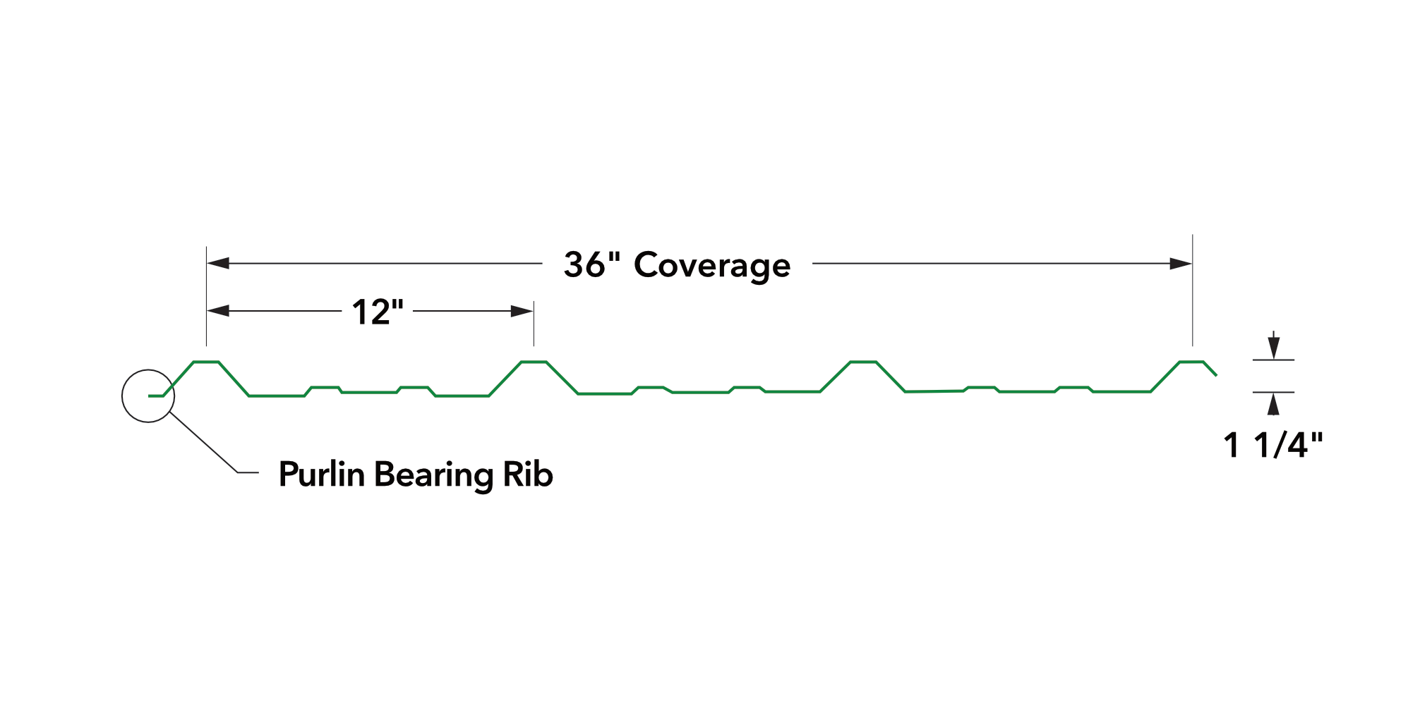 • “Purlin Bearing Rib” as shown below to provide for roof application.