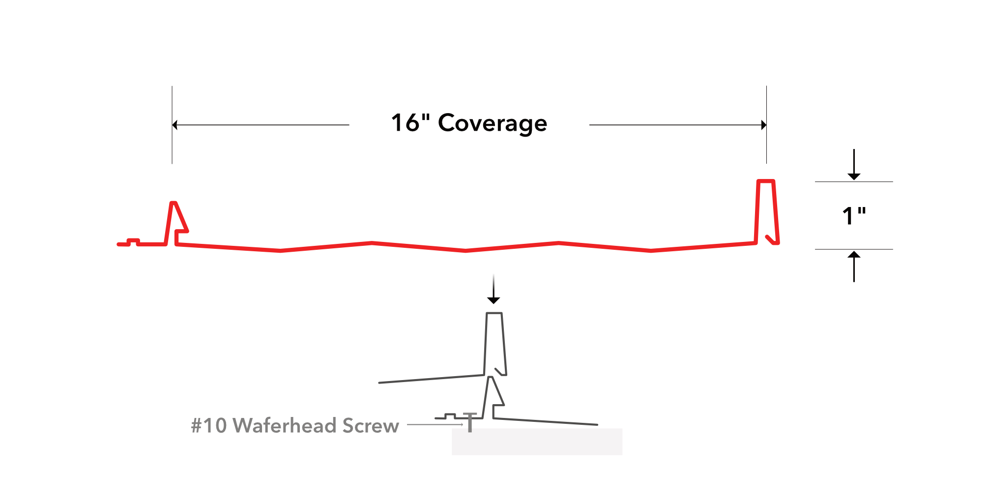 • Minimum 1/12 roof pitch required (Butyl tape is required on all roof applications, less than 3/12 pitch requires 1” Butyl tape and Stitch screws).